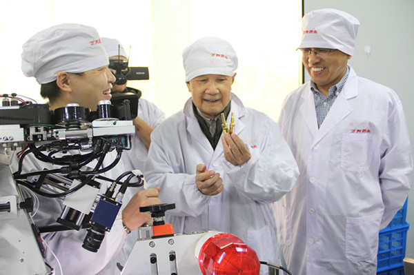 唐希燦院士深入車間察看產(chǎn)品生產(chǎn)情況,認真聽取藥品生產(chǎn)與質量管理關鍵技術、工藝及未來新的產(chǎn)業(yè)化支撐平臺建設規(guī)劃后,對企業(yè)提高產(chǎn)品質量與生產(chǎn)效率、推進科技成果轉化與應用、提高產(chǎn)品附加值等方面的能力給予了高度評價。