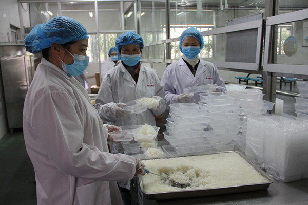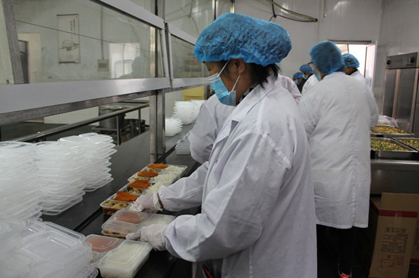 3月9日中午,整潔明亮的員工食堂里,戴著一次性帽子、口罩、手套,身著白大褂的幾名員工正在抓緊時(shí)間打包390份工作餐。30分鐘內(nèi),這批安心盒飯將由專車分批運(yùn)送到萬邦德集團(tuán)溫嶺本部生產(chǎn)廠區(qū),并第一時(shí)間送達(dá)復(fù)工員工手中。