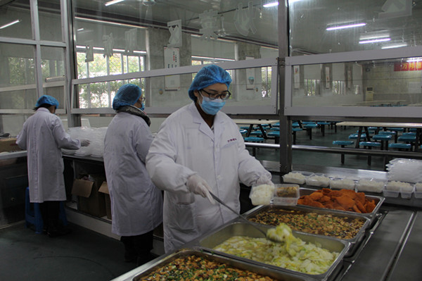面對(duì)形勢(shì)嚴(yán)峻的疫情,如何確保復(fù)工員工吃的安全放心,成為萬邦德疫情防控工作中的又一關(guān)鍵問題。“在疫情防控特殊時(shí)期,員工工作餐首先要保證安全,其次在味道、分量、菜色上下功夫。自復(fù)工以來,由于返崗員工每日都在發(fā)生變化,我們后勤保障部同事一直緊繃疫情防控這根弦,嚴(yán)格執(zhí)行盒餐制,實(shí)行由食堂到廠區(qū),專車配送,兩點(diǎn)一線的閉環(huán)管理,分時(shí)段專人領(lǐng)餐配送至員工工位,以保障復(fù)工員工吃上安全、可口的飯菜。”后勤保障小組組長潘華培說道,“由于員工食堂人手不足,為了確保所有復(fù)工員工能第一時(shí)間吃上熱乎乎的飯菜,公司還抽調(diào)了9名行政人員上食堂一線支援。”