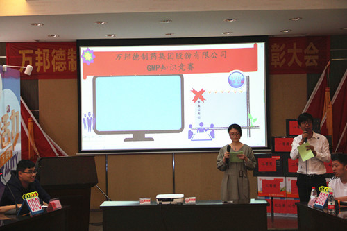 質(zhì)量保證部瞿君彪與梁嘉茜宣布萬邦德制藥集團(tuán)GMP知識競賽正式開始