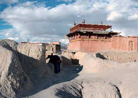 阿里古格王國(guó)遺址是全國(guó)第一批重點(diǎn)文物保護(hù)單位之一。古格王國(guó)是在公元十世紀(jì)前后,由吐蕃王朝末代贊普朗達(dá)瑪?shù)闹貙O吉德尼瑪袞在王朝崩潰后,率領(lǐng)親隨逃往阿里建立起來(lái)的。遺址在阿里扎達(dá)縣札不讓區(qū)象泉河畔的一座土山上,占地約18萬(wàn)平方米,共有房屋洞窟300余處、佛塔(高10余米)3座、寺廟4座、殿堂2間及地下暗道2條。外圍建有城墻,四角設(shè)有碉樓。整個(gè)遺址建在一小土山上,建筑分上、中、下三層,依次為王宮、寺廟和民居。在其紅廟、白廟及輪回廟的雕刻造像及壁畫(huà)中不乏精品。圍繞古格都城札不讓的重要遺址還有東嘎、皮央等,均有大量文物遺存。古格王國(guó)遺址是一座規(guī)模宏偉、面積浩大的高原古城,它不僅為研究西藏歷史,而且為研究我國(guó)古代建筑提供了重要的實(shí)物資料。