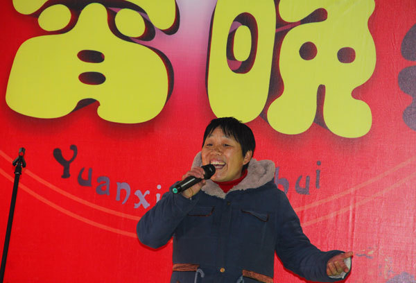 公司固體車間員工易戴紅為大家演唱歌曲《邊疆的泉水清又純》